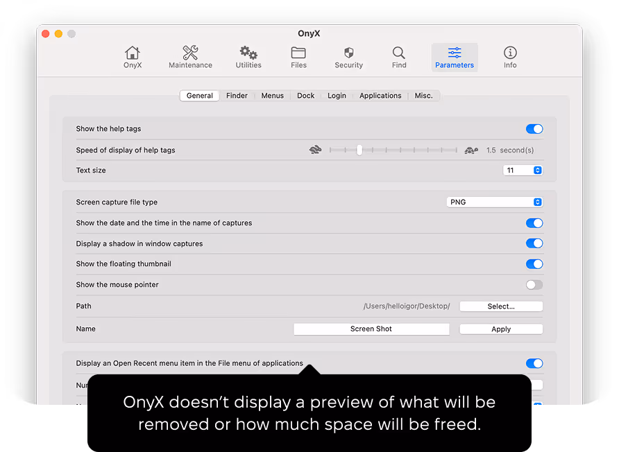 OnyX is a powerful free app for users who want to be in complete control of their Mac. It gives you more possibilities to configure your system than the regular macOS settings panel. However, it’s not for beginners, and users need to be careful not to delete important macOS files by mistake.